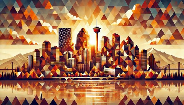 Title: Artistic Triangular Depiction of Calgary Skyline at Dusk with Vibrant Colors Photo ID: 54674