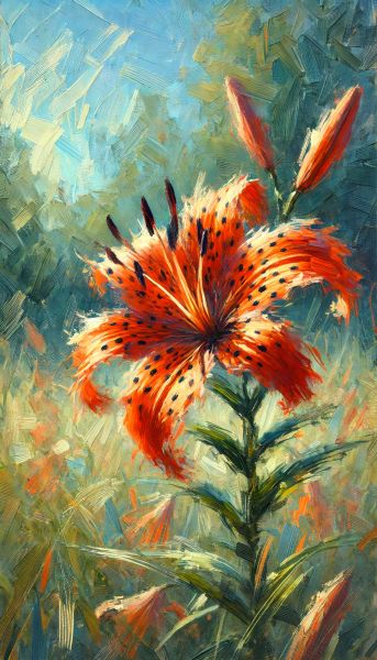 Title: Vibrant Impressionist Interpretation of Western Wood Lily in Bloom Photo ID: 54698
