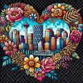 Intricate Cubist Heart Encapsulates Vibrant Calgary Skyline