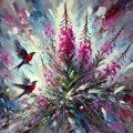Vibrant Expression of Nature: Fireweed and Birds in Abstract Art