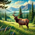 Majestic Elk in Lush Meadows with Rocky Mountain Backdrop