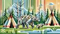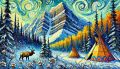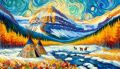 Vibrant and Symbolic Representation of Banff National Park with First Nations Artistry