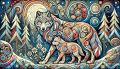 Enchanting Dance of Colors: A Cubist Wolf and Pup in Alberta's Wilderness