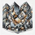 Cubist Interpretation of Calgary’s Bow Building in Metallic Tones