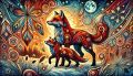 Enchanting Cubist Interpretation of a Red Fox and Kit Amidst Alberta Wilderness