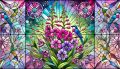Vibrant Stained-Glass Inspired Artwork Featuring Fireweed and Perching Birds