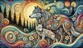 Enchanting Illustration of Wolf and Pup Amidst Alberta's Wilderness