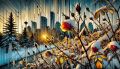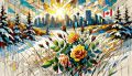 Cubist Interpretation of Calgary's Wild Roses Amidst Winter