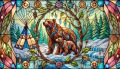 Vibrant Stained-Glass Art of Mother Bear and Cub in Alberta