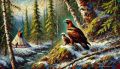 Enchanting Alberta Forest Artwork Rendered in Traditional Feather Motifs