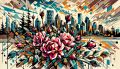 Urban Elegance Meets Natural Beauty: Cubist Wild Roses Against Calgary Skyline