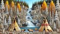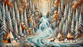 Enchanting Cubist Interpretation of Sunwapta Falls Featuring Nature and Wildlife