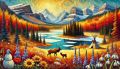 Enchanting Illustration of Alberta's Majestic Wildlife and Scenic Beauty