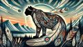 Dreamy Cubist Illustration of a Cougar and Cub in Alberta’s Wilderness