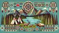 Vibrant Circles and Indigenous Motifs Capture Banff's Majestic Beauty
