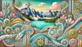 Vibrant DecoPunk Interpretation of Banff National Park in Artistic Splendor