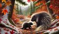 Autumn's Touch in Calgary: A Porcupine Mother and Her Young Amidst the Snow