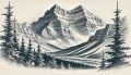 Majestic Sketch of Alberta's Rocky Mountains in Pencil Artistry