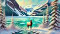 Majestic Elk Overlooking Frozen Lake Louise, Winter Elegance Unveiled