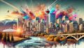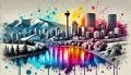 Exploding Colors Over Calgary: A Vibrant Artistic Representation of its Skyline