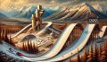 Captivating Oil Painting of Olympic Park in Majestic Calgary Mountainscape