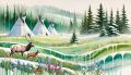 Serene Summer Morning in Alberta Forest with Indigenous Tipis