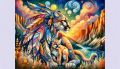Fusion of Nature and Native Art: Intricate Feathered Mountain Lion