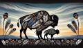 Exploring Mother and Calf Bison in a Dreamlike Cubist Landscape