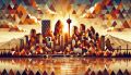 Artistic Triangular Depiction of Calgary Skyline at Dusk with Vibrant Colors