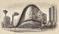 Artistic Render of Calgary's National Music Centre in Pencil Sketch