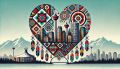 Artistic Heart-Shaped Rendering of Calgary's Iconic Skyline and Cultural Symbols