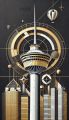 Artistic Fusion of Classic and Modern: Calgary Tower in Black and Gold