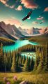 Majestic Banff Landscape with Soaring Eagle and Serene Lake