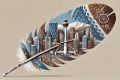 Calgary Skyline Artfully Rendered in Indigenous Feather Design