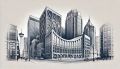 Artistic Sketch of Calgary's Bow Building Amidst Urban Scenery