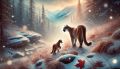 Mother Cougar and Cub in a Mystical Alberta Winter Wonderland