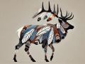 Captivating Elk Silhouette Infused with Traditional First Nations Feather Art